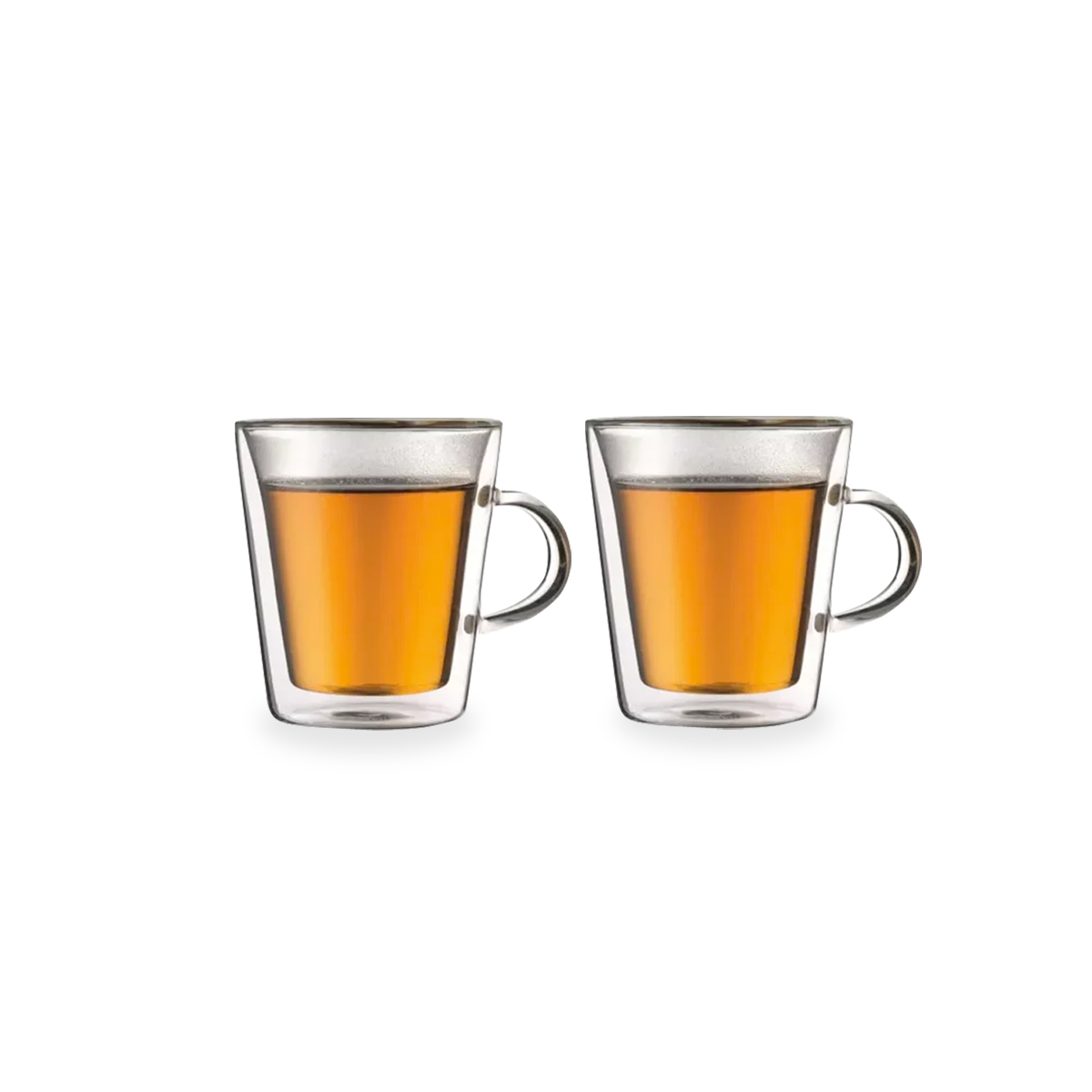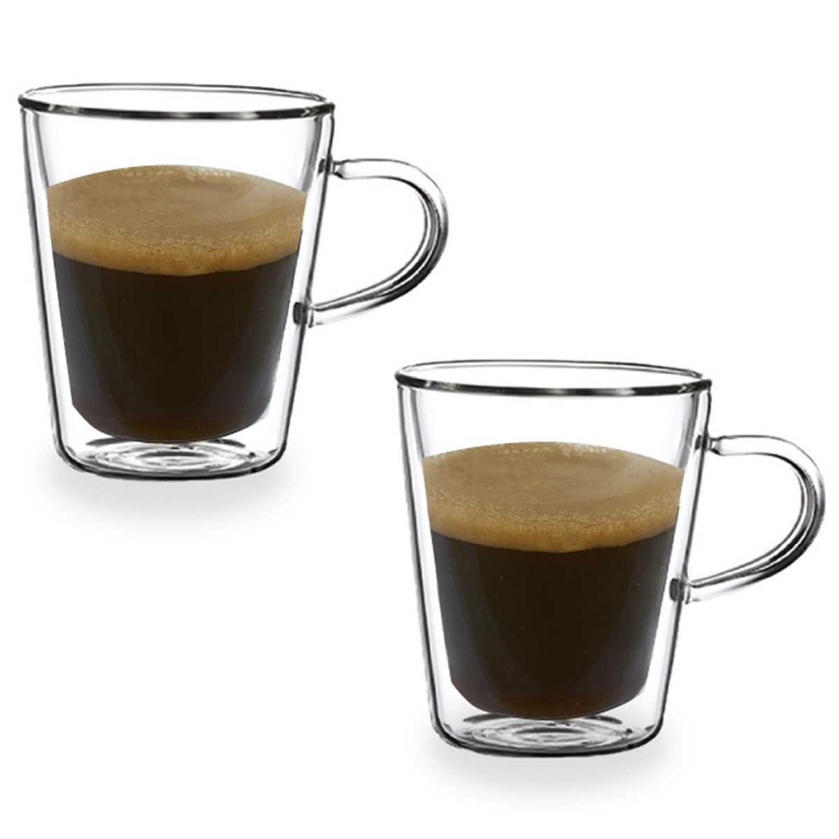 - סט 2 כוסות זכוכית עם דופן כפולה וידית אחיזה נוחה