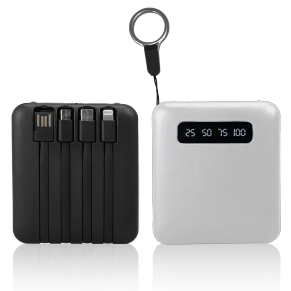 הסוללה מצוידת ב-4 נוריות לחיווי סטטוס הטעינה, כך שתוכל לדעת תמיד כמה כוח נשאר בסוללה. בנוסף, המטען כולל כבלים מוטמעים לטעינה: MICRO-USB, IPHONE ו-TYPE-C, כך שהוא מתאים כמעט לכל מכשיר.