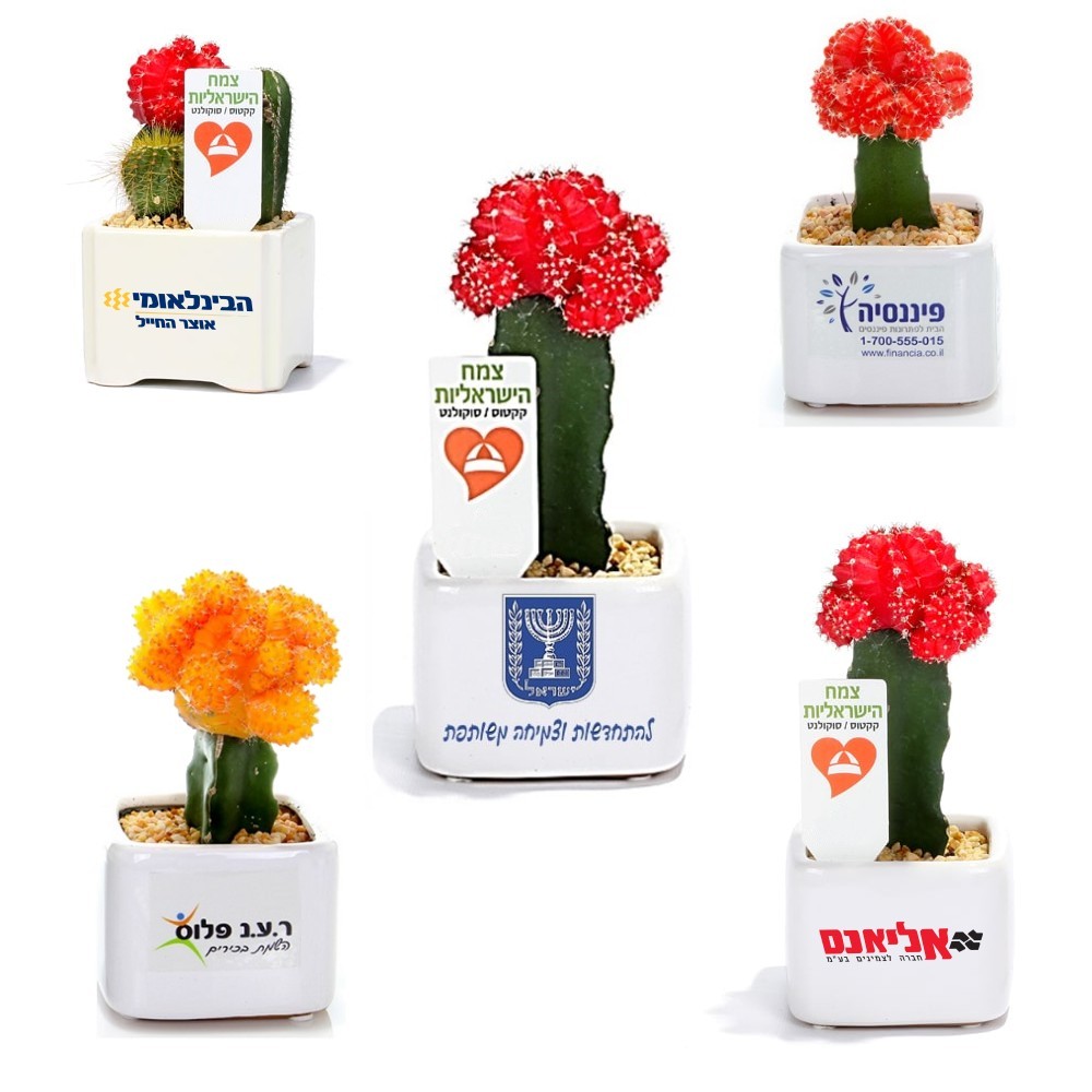 - קקטוסים ממותגים | עציץ קקטוס ממותג | עציץ קקטוס עם לוגו | קקטוס צבעוני ממותג