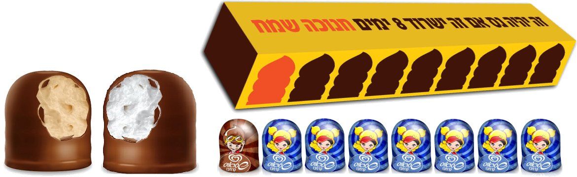 - מכיל 9 יחידות – 8 בטעם וניל ו-1 בטעם מוקה