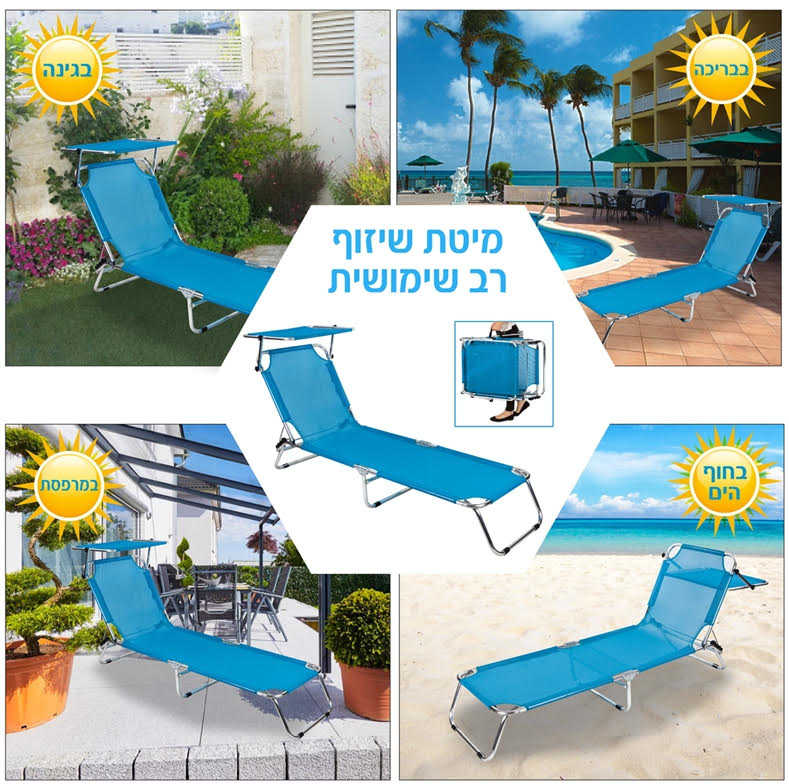 מיטת שיזוף רב שימושית מתקפלת מאלומיניום