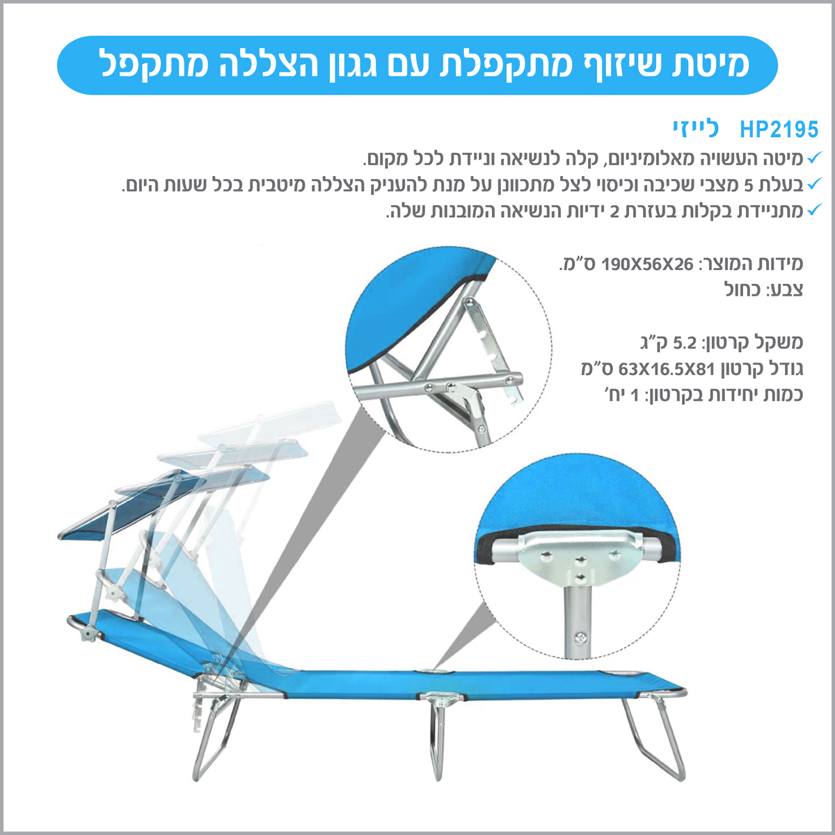 מיטת שיזוף מתקפלת עם גגון הצללה מתכוונן