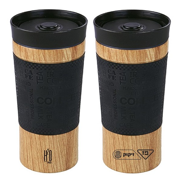 - מתנה לעובדים | מתנה ללקוחות | כוס תרמית ממותגת דמוי עץ